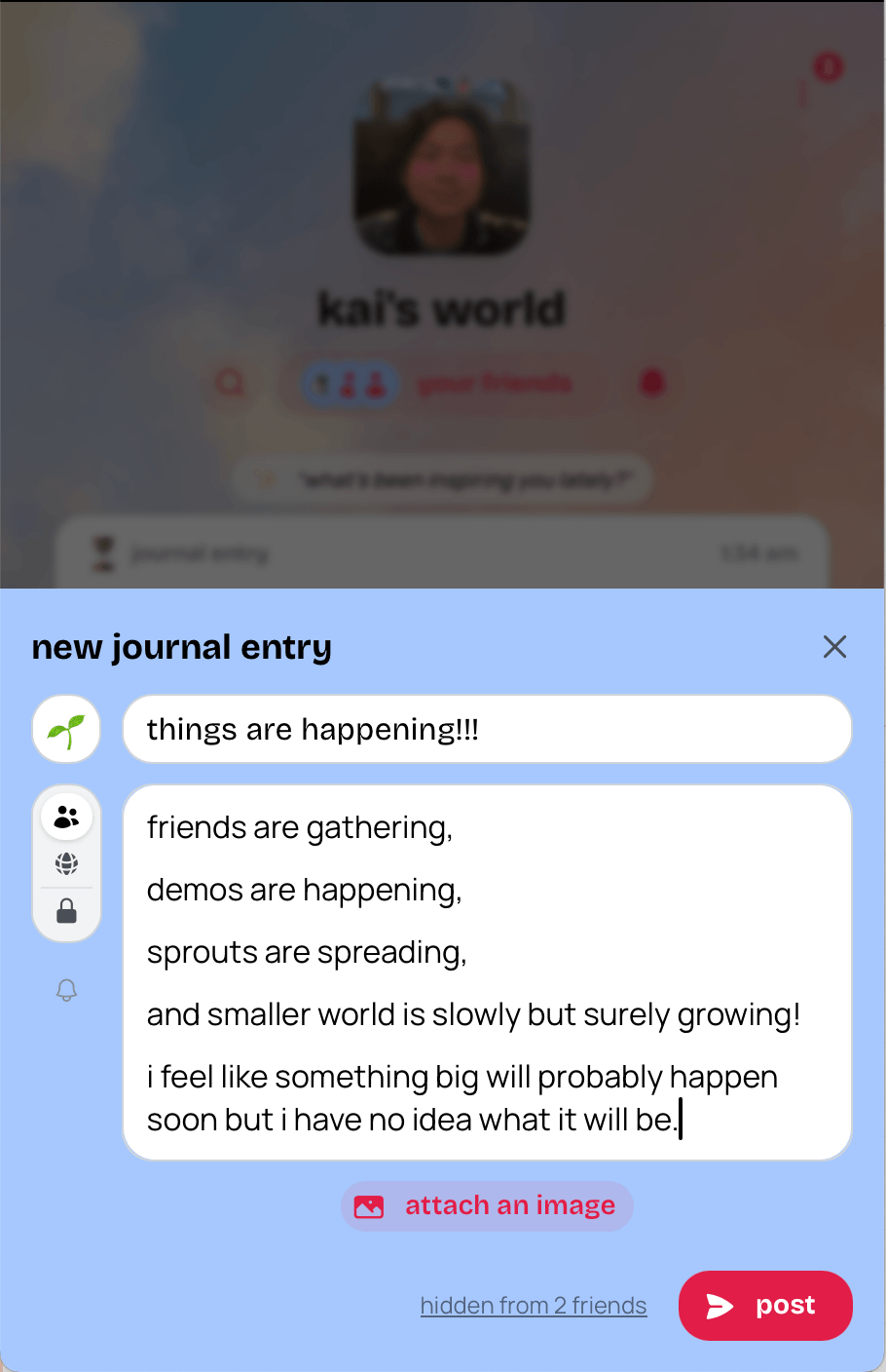a private page for your thoughts, casual event invites, or little life updates — whatever's on your mind.